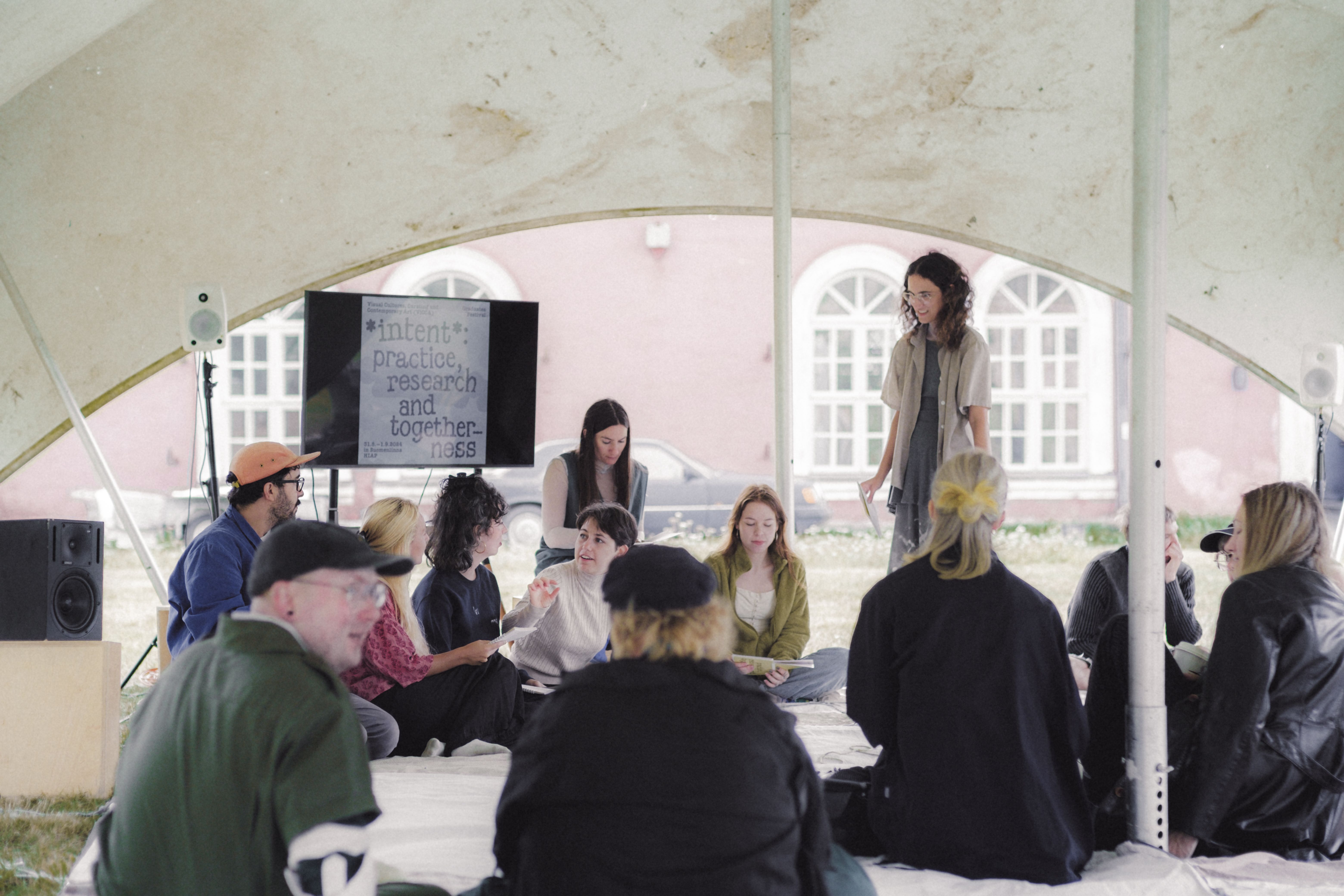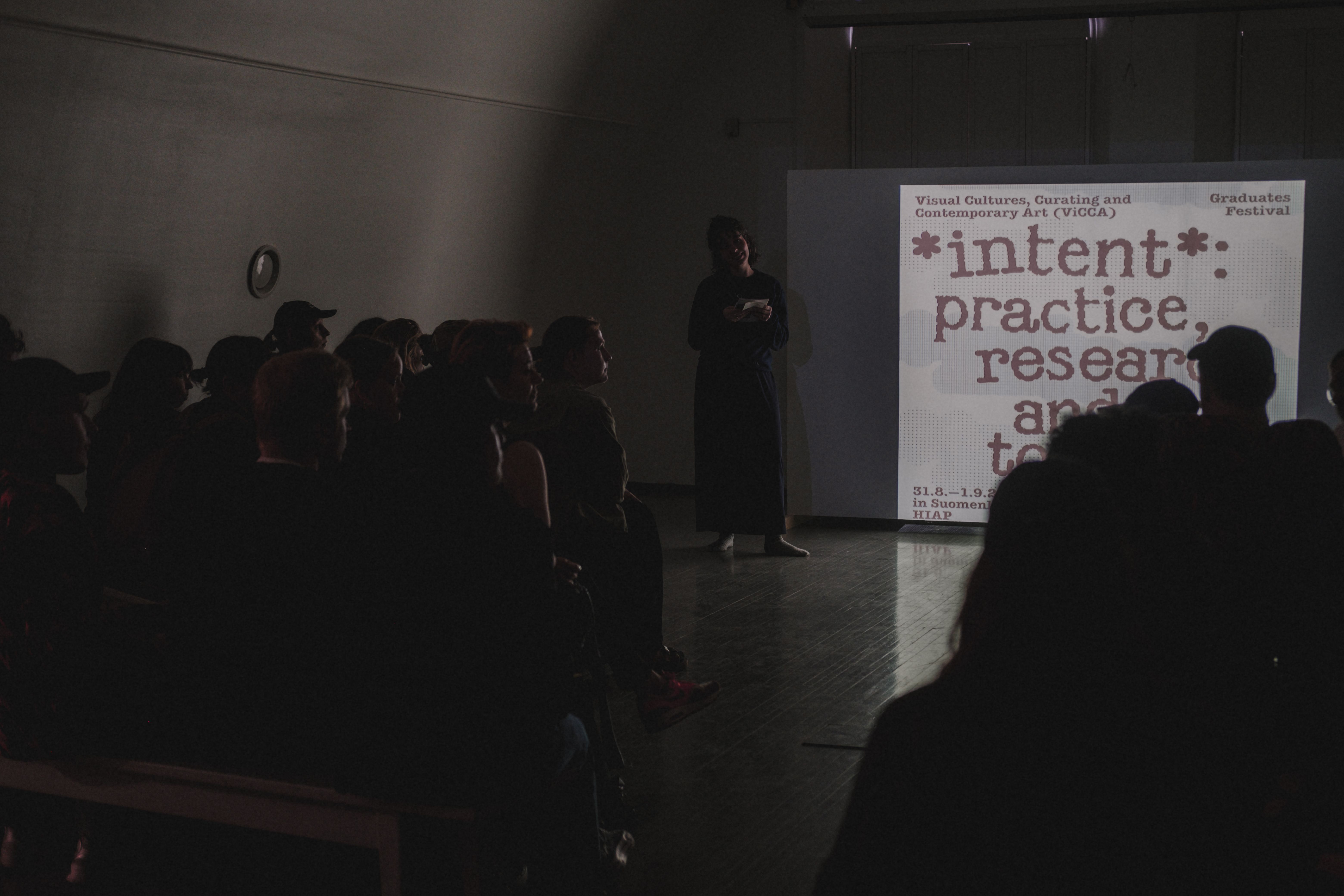 Se inicia *intent* con la intención de conectar el mundo académico y el público local, y de fomentar el intercambio dentro de la escena artística afincada en Finlandia. El título del festival, además de ser un juego de palabras que alude a la gran carpa bajo la que se celebra, pone de relieve la intencionalidad que se refleja en las prácticas y la investigación de la comunidad ViCCA y que subyace a la creación del propio evento. La intencionalidad es intrínseca al trabajo de los estudiantes, que comparten sus prácticas relacionadas con la tesis y la culminación de su investigación en esta nueva salida para el intercambio de ideas y percepciones. Esperamos que el festival pueda inspirar iniciativas similares de colaboración entre programas, disciplinas y prácticas.