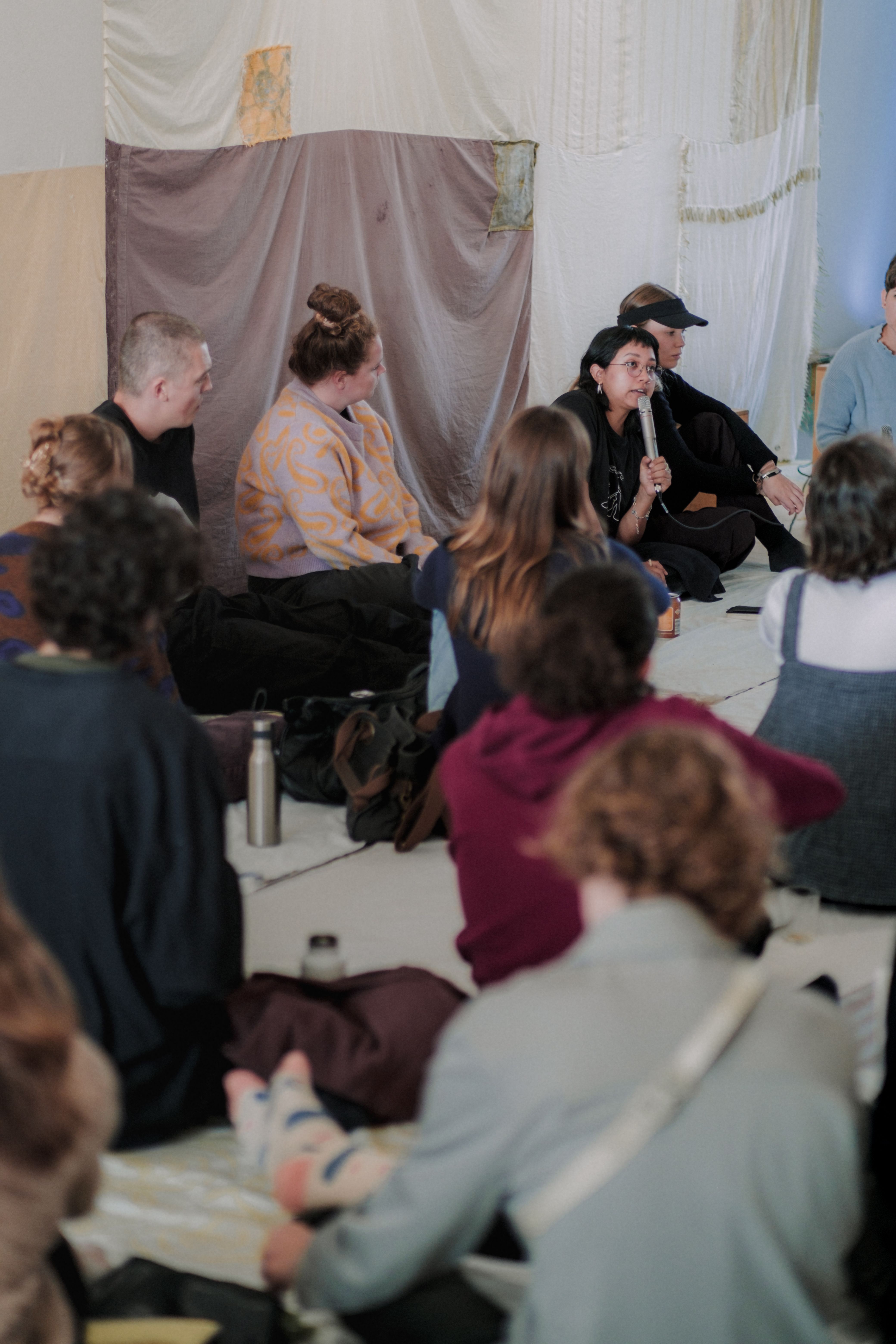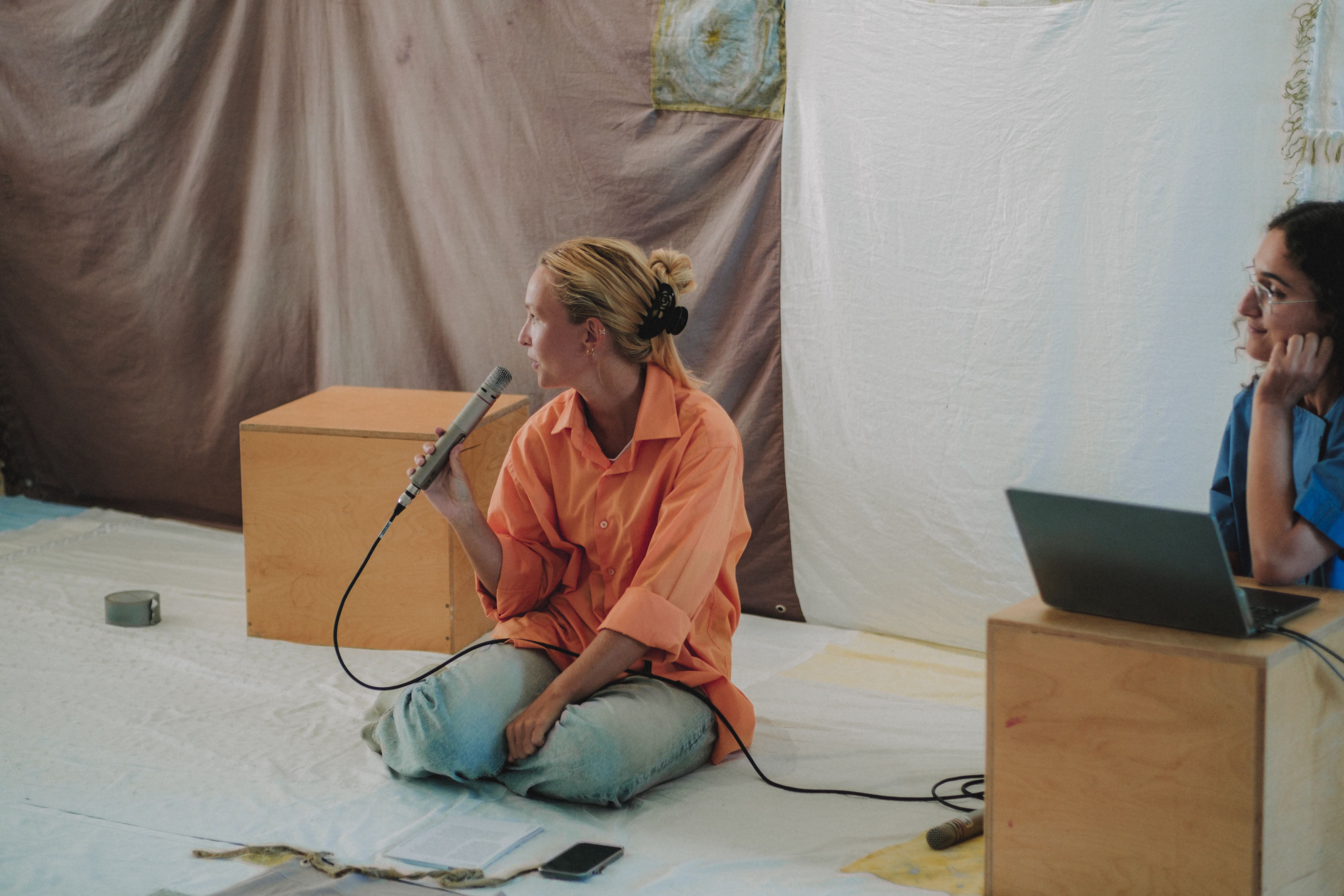 During the festival, the graduates’ work is curated through different formats of research and practice: a programme of talks, performances and film screenings, a showcase of printed matter, and an opening with live music and food. The pavilion is designed into thematic areas which are defined organically by a commissioned textile piece by Eve Hamari. The open space offers the audience and participants a chance to share knowledge while immersing themselves in the nature and beautiful landscape of the island. Above all, we hope that the festival may inspire similar initiatives for the collaboration between programmes, disciplines, and practices.
